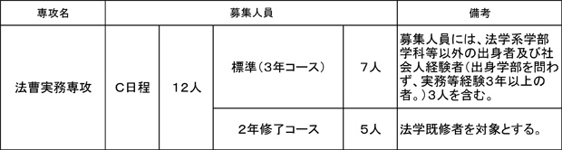 平成25年度鹿児島大学法科大学院入学者選抜試験(C日程)の募集人員を下記のとおりに変更いたします。